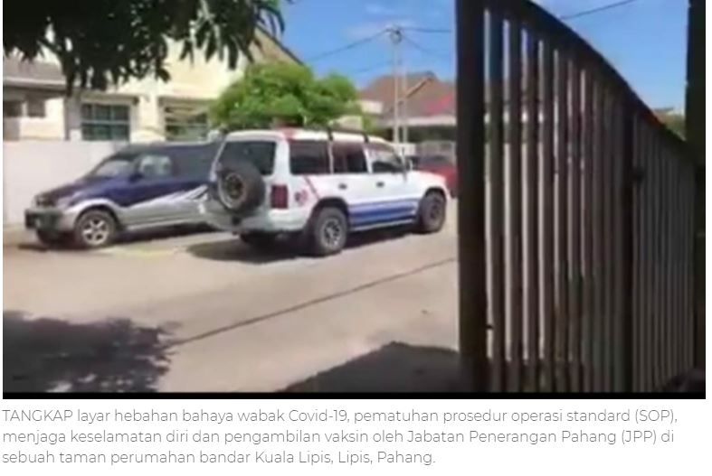 Hebahan yang dilakukan oleh dua petugas jabatan berkenaan menggunakan bahasa daerah lebih mudah dan selesa untuk mengingatkan penduduk di taman perumahan bandar Kuala Lipis berhubung kewaspadaan ancaman penularan wabak Covid-19, pematuhan prosedur operasi standard (SOP) dan mengambil suntikan vaksinasi.