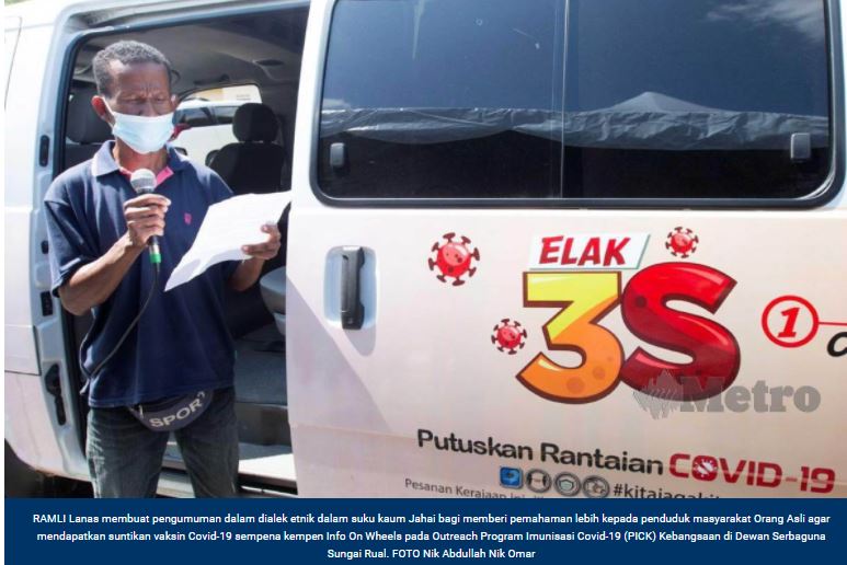 3 JULAI 2021, HARIAN METRO, HEBAH KEPENTINGAN VAKSINASI IKUT DIALEK ORANG ASLI