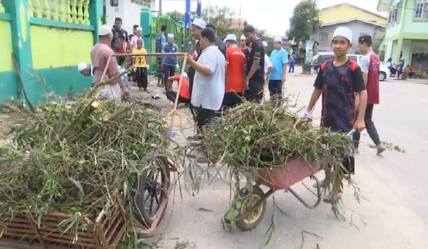 Aktiviti gotong-royong turut diadakan selain menyantuni golongan sasaran di sini.