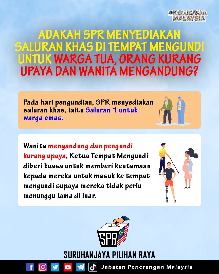 ADAKAH SPR MENYEDIAKAN SALURAN KHAS DI TEMPAT MENGUNDI UNTUK WARGA TUA, ORANG KURANG UPAYA DAN WANITA MENGANDUNG?