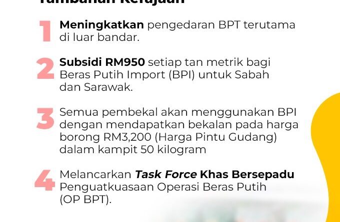 BEKALAN BERAS TEMPATAN (BPT) EMPAT LANGKAH INTERVENSI TAMBAHAN KERAJAAN jonathan2023-10-27T15:32:47+08:00[vc_row][vc_column][vc_empty_space][vc_single_image image="26472" img_size="large"][vc_column_text]Klik Seterusnya[/vc_column_text][/vc_column][/vc_row] 04 Oct 2023Infografik 2023 Read more +