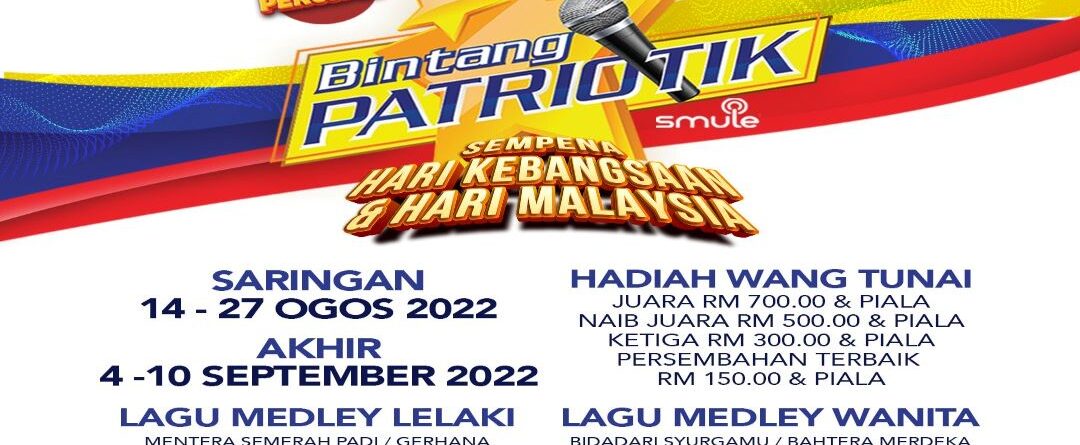 jonathan2023-11-08T08:09:02+08:00Salam Malaysia Madani, Jabatan Penerangan Malaysia dengan kerjasama Malaysia Smule Community menganjurkan Pertandingan Nyanyian Bintang Patriotik Smule 2023 secara online melalui aplikasi smule secara percuma!