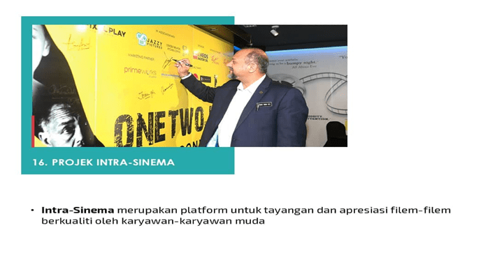 - Intra-Sinema merupakan platform untuk tayangan dan apresiasi filem-filem berkualiti oleh karyawan-karyawan muda.