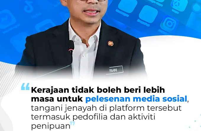 KERAJAAN TIDAK BOLEH BERI LEBIH MASA UNTUK PELESENAN MEDIA SOSIAL, TANGANI JENAYAH DI PLATFORM TERSEBUT TERMASUK PEDOFILIA DAN AKTIVITI PENIPUAN