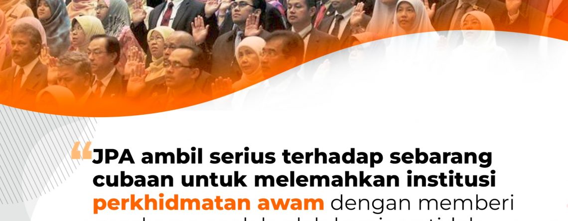 JPA AMBIL SERIUS TERHADAP SEBARANG CUBAAN UNTUK MELEMAHKAN INSTITUSI PERKHIDMATAN AWAM DENGAN MEMBERI GAMBARAN SEOLAH-OLAH KERAJAAN TIDAK BERTANGGUNGJAWAB TERHADAP ISU KEBAJIKAN PEGAWAI AWAM NEGARA