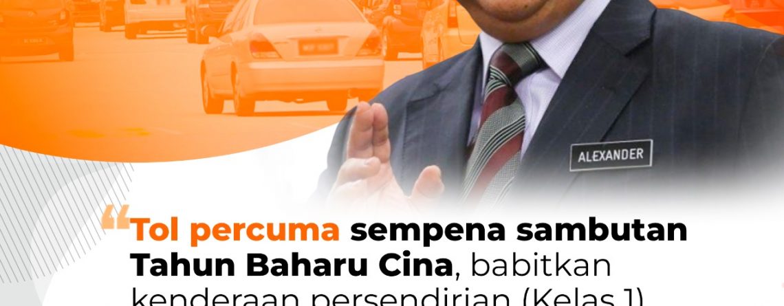 TOL PERCUMA SEMPENA SAMBUTAN TAHUN BAHARU CINA, BABITKAN KENDERAAN PERSENDIRIAN (KELAS 1) PADA 8 HINGGA 9 FEBRUARI 2024