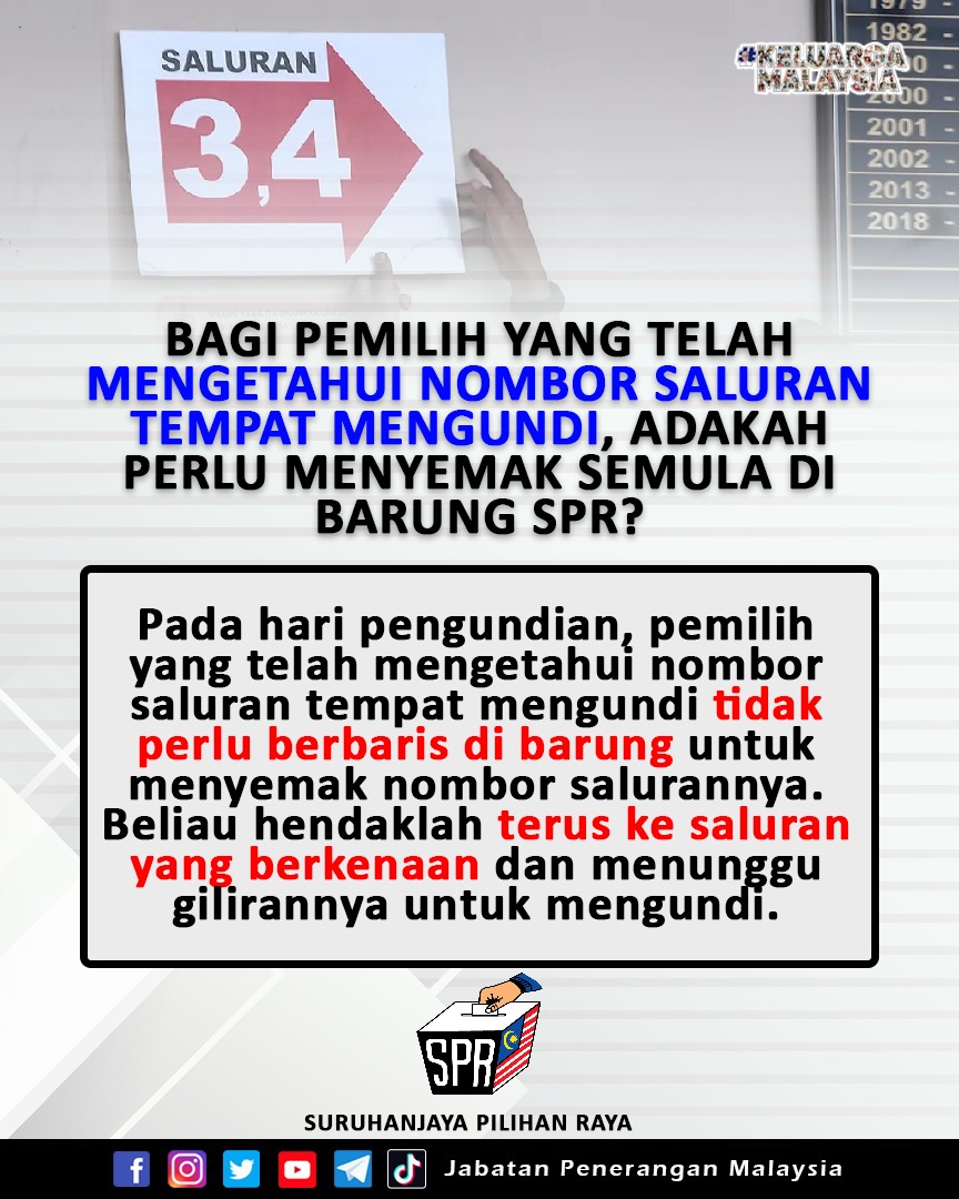 BAGI PEMILIH YANG TELAH MENGETAHUI NOMBOR SALURAN TEPAT MENGUNDI ADAKAH PERLU MENYEMAK SEMULA DI BARUNG SPR?