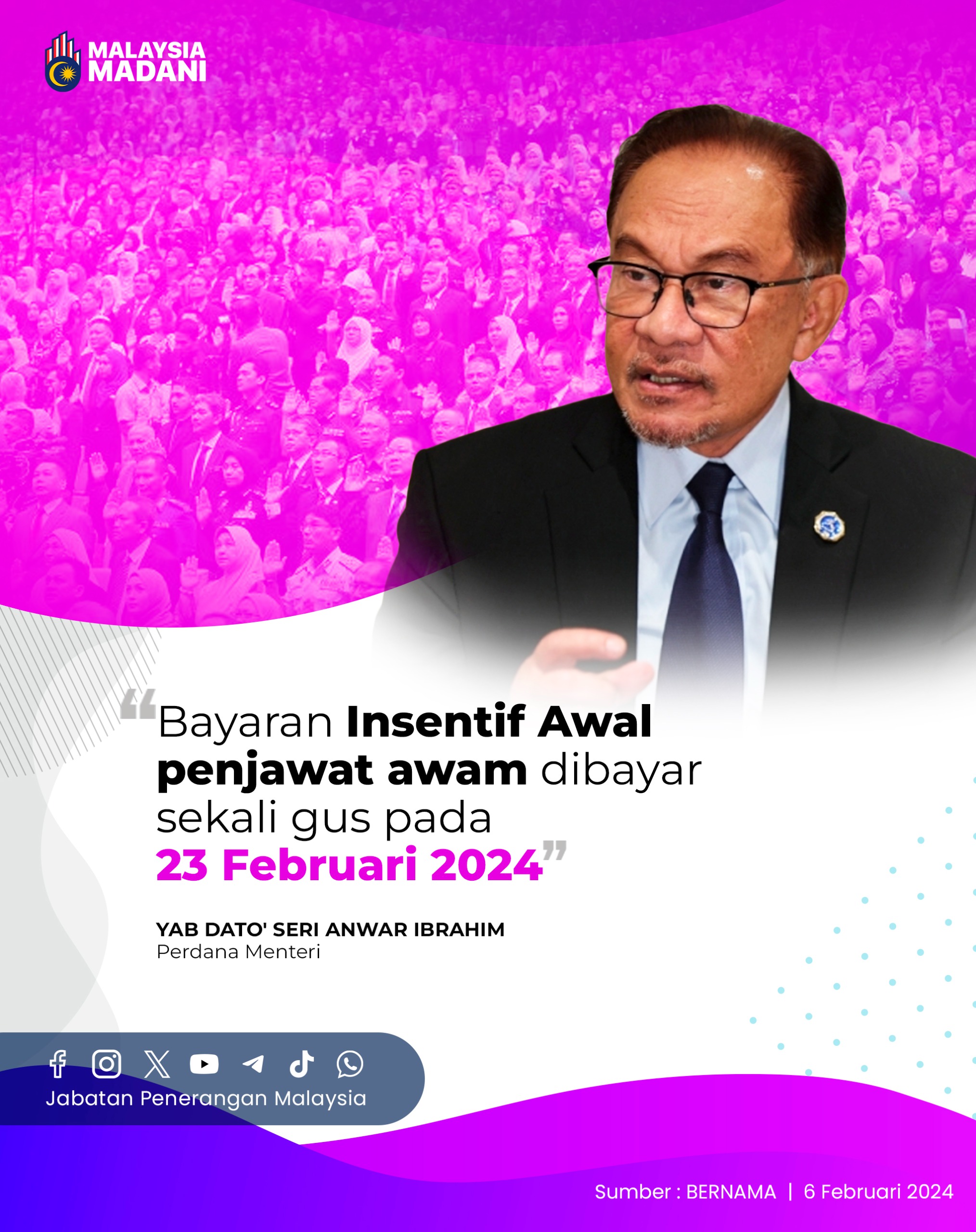 BAYARAN INSENTIF AWAL PENJAWAT AWAM DIBAYAR SEKALI GUS PADA 23 FEBRUARI 2024