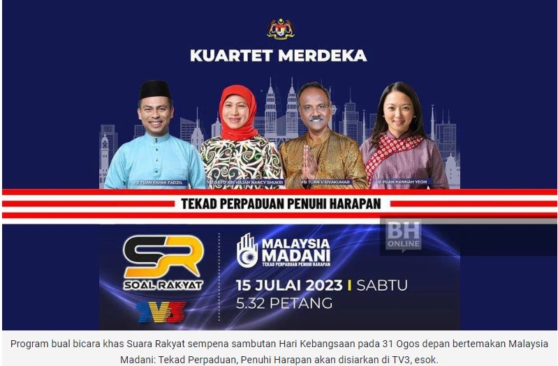 Berita Harian, 14 Julai 2023, Kuartet Merdeka Di TV 3 – 4 Menteri Kongsi Cerita Sambutan Hari Kebangsaan Ketika Zaman Kanak-Kanak