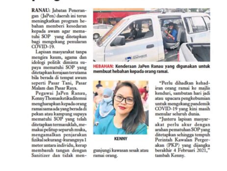 23.1.2021, Utusan Borneo Sabah, m/s 3 JaPen Ranau tingkatkan program hebahan