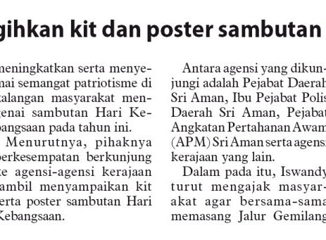 UTUSAN BORNEO SARAWAK | 20.8.2020 (KHAMIS) | M/S : | JAPEN SRI AMAN AGIHKAN KIT DAN POSTER SAMBUTAN HARI KEBANGSAAN