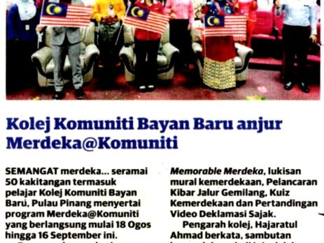 UTUSAN MALAYSIA | 19.8.2020 (RABU) | M/S : | KOLEJ KOMUNITI BAYAN BARU ANJUR MERDEKA@KOMUNITI