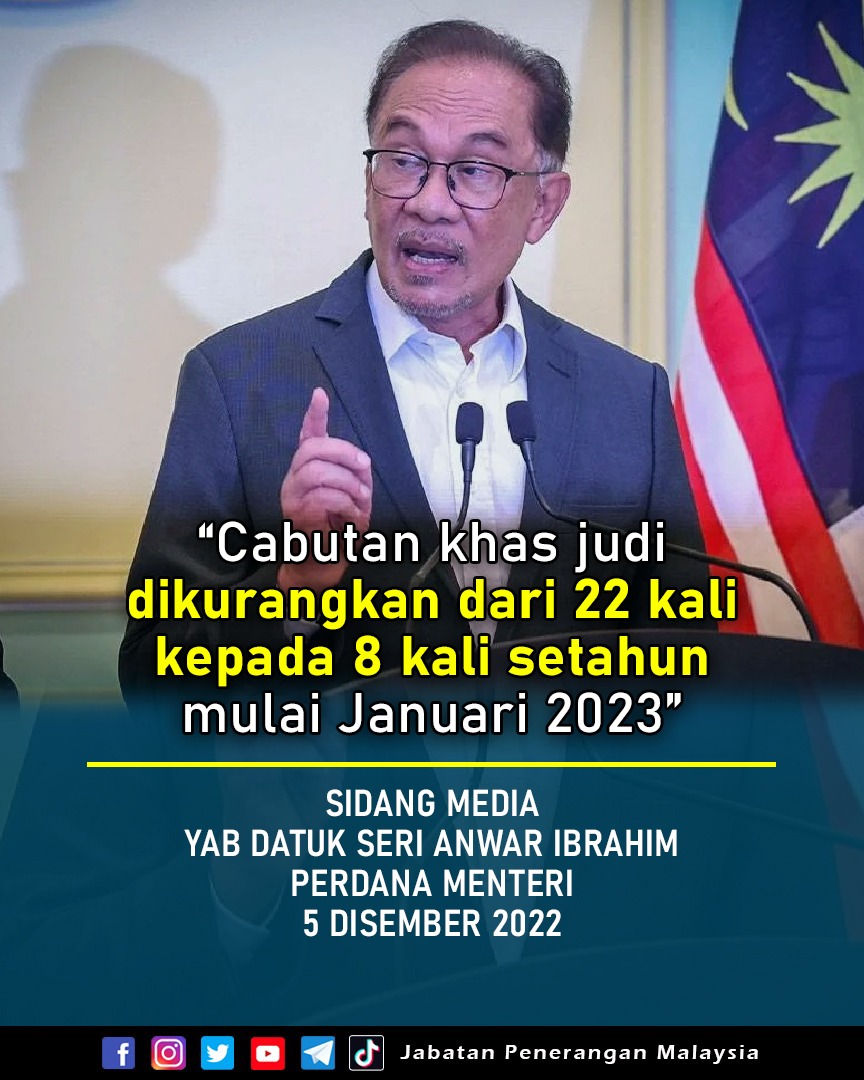 CABUTAN KHAS JUDI DIKURANGKAN DARI 22 KALI KEPADA 8 KALI SETAHUN MULAI JANUARI 2023