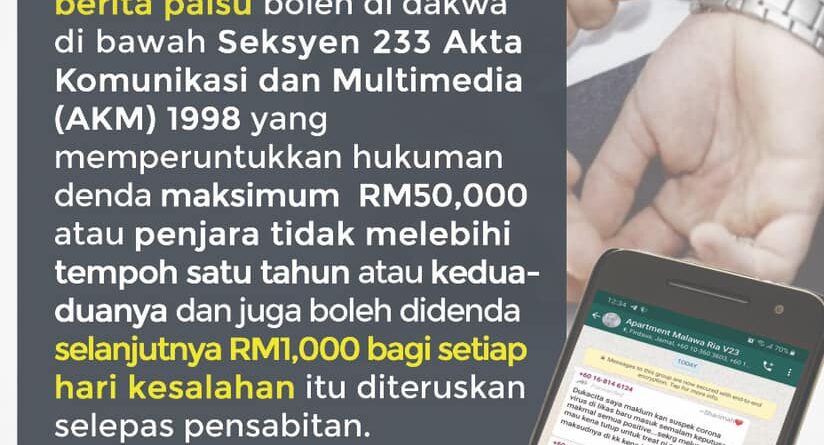 "Penyebar khabar angin atau berita dengan niat hendak menyebabkan ketakutan atau kegentaran awam pula boleh didakwa di bawah Seksyen 505 Kanun Keseksaan yang memperuntukkan hukuman penjara sehingga dua tahun atau denda atau kedua-duanya, jika disabitkan kesalahan," kata MCMC.[/vc_column_text][/vc_column][/vc_row]