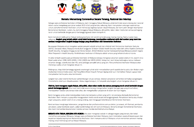 Pada 27 Jan lalu, MCMC dan PDRM telah memberi amaran bahawa tindakan tegas akan dikenakan terhadap mereka yang menyebarkan kandungan, khabar angin atau berita yang tidak sahih mengenai penularan novel coronavirus di Malaysia.
