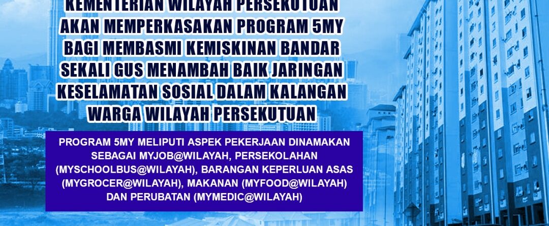 KEMENTERIAN WILAYAH PERSEKUTUAN AKAN MEMPERKASAKAN PROGRAM 5MY BAGI MEMBASMI KEMISKINAN BANDAR SEKALIGUS MENAMBAHBAIK JARINGAN KESELAMATAN SOSIAL DALAM KALANGAN WARGA WILAYAH PERSEKUTUAN