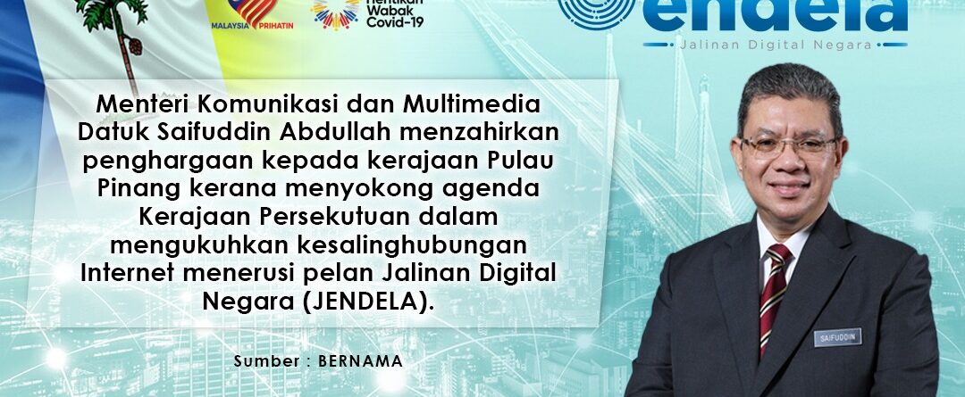 MENTERI KOMUNIKASI DAN MULTIMEDIA DATUK SAIFUDDIN ABDULLAH MENZAHIRKAN PENGHARGAAN KEPADA KERAJAAN PULAU PINANG KERANA MENYOKONG AGENDA KERAJAAN PERSEKUTUAN DALAM MENGUKUHKAN KESALINGHUBUNGAN INTERNET MENERUSI PELAN JALINAN DIGITAL NEGARA (JENDELA)