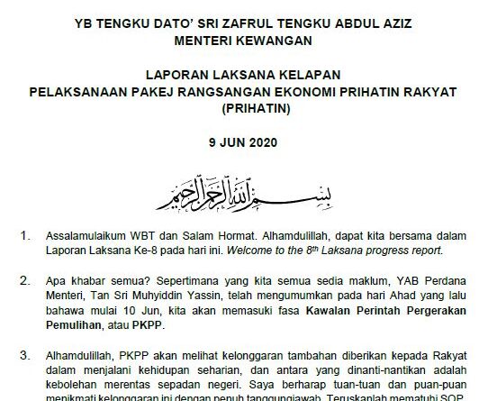 LAPORAN LAKSANA KE-8 PAKEJ PRIHATIN MATLAMAT 2 : SOKONG PERNIAGAAN