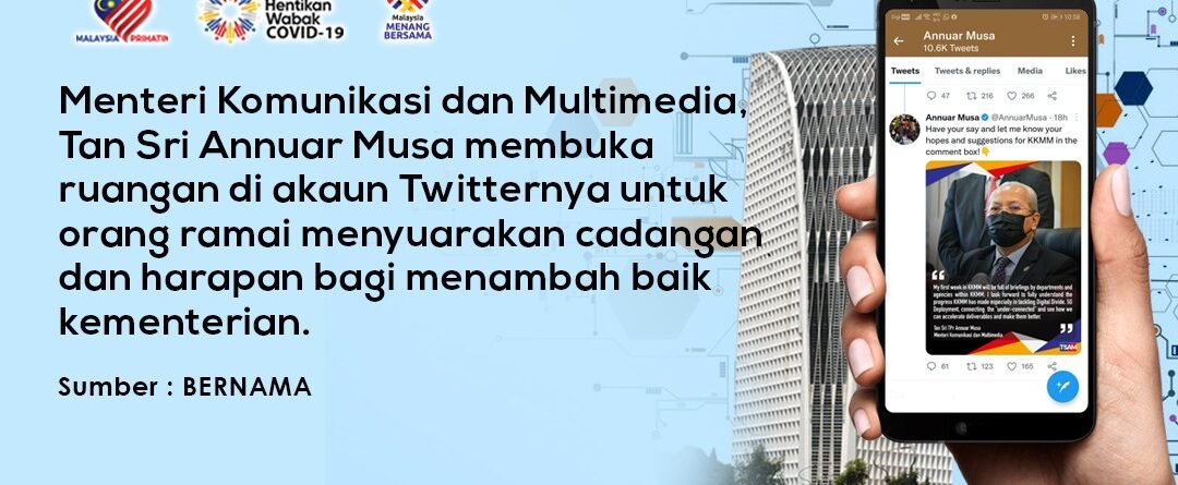 MENTERI KKMM TAN SRI ANUAR MUSA MEMBUKA RUANGAN DI AKAUN TWITTERNYA UNTUK ORANG RAMAI MENYUARAKAN CADANGAN DAN HARAPAN BAGI MENAMBAH BAIK KEMENTERIAN jonathan2023-10-27T15:56:02+08:00[vc_row][vc_column][vc_empty_space][vc_single_image image="12509" img_size="large"][vc_column_text]Klik Seterusnya[/vc_column_text][/vc_column][/vc_row][vc_row][vc_column][/vc_column][/vc_row] 03 Sep 2021Infografik 2021 Read more +
