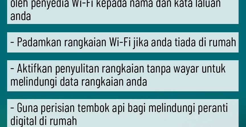 TIP KESELAMATAN WI-FI DI RUMAH jonathan2023-10-27T15:48:24+08:00[vc_row][vc_column][vc_empty_space][vc_single_image image="15954" img_size="large"][vc_column_text]Klik Seterusnya[/vc_column_text][/vc_column][/vc_row] 09 May 2022Infografik 2022 Read more +