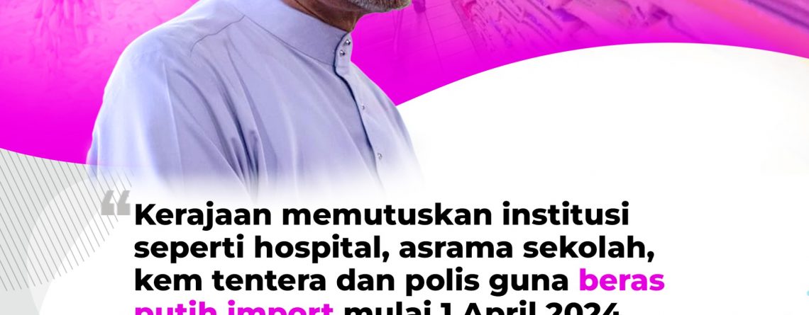 KERAJAAN MEMUTUSKAN INSTITUSI SEPERTI HOSPITAL, ASRAMA SEKOLAH, KEM TENTERA DAN POLIS GUNA BERAS PUTIH IMPORT MULAI 1 APRIL 2024, BANTU RAKYAT DAPATKAN BEKALAN BERAS TEMPATAN