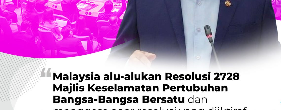 MALAYSIA ALU-ALUKAN RESOLUSI 2728 MAJLIS KESELAMATAN PERTUBUHAN BANGSA-BANGSA BERSATU DAN MENGGESA AGAR REOLUSI YANG DIIKTIRAF MENGIKUT UNDANG-UNDANG, DIKUATKUASAKAN SERTA-MERTA