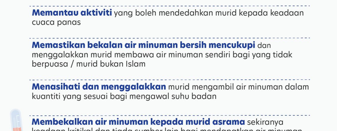 INSTITUSI PENDIDIKAN BAWAH KPM DIMINTA PASTIKAN PENJAGAAN KEBAJIKAN, KESIHATAN DAN KESELAMATAN SEMASA CUACA PANAS
