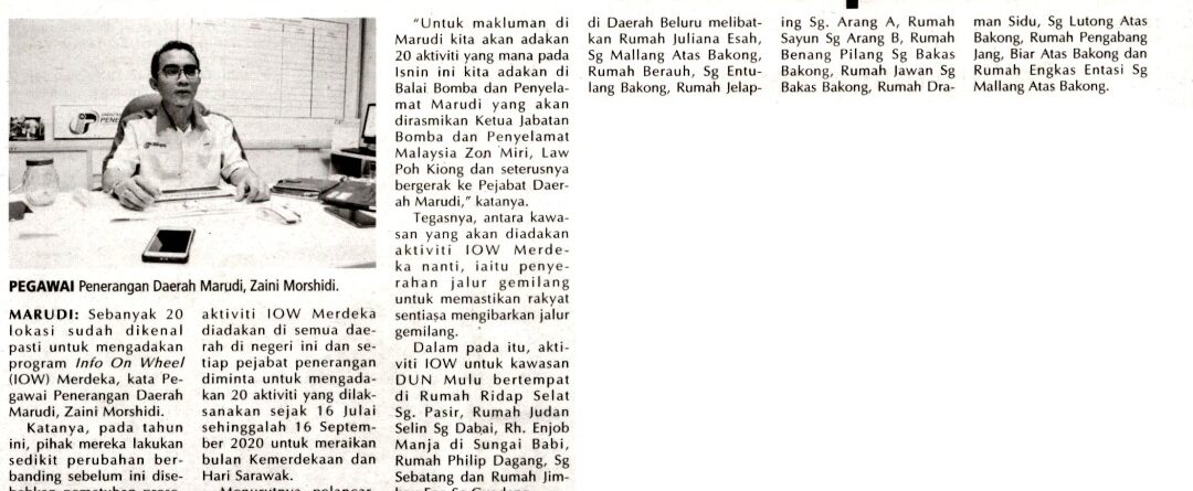 UTUSAN SARAWAK | 9.8.2020 (AHAD) | M/S : | INFO ON WHEELS DI MARUDI BERJAYA DILAKSANAKAN