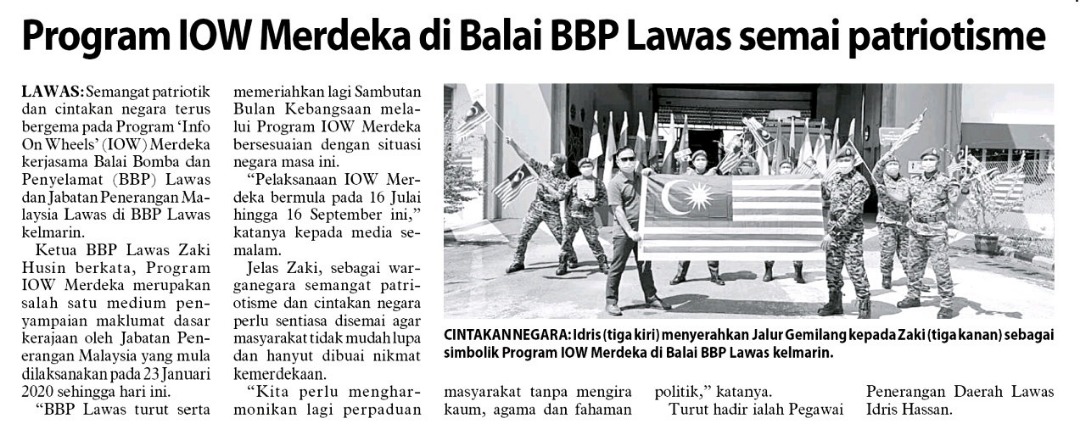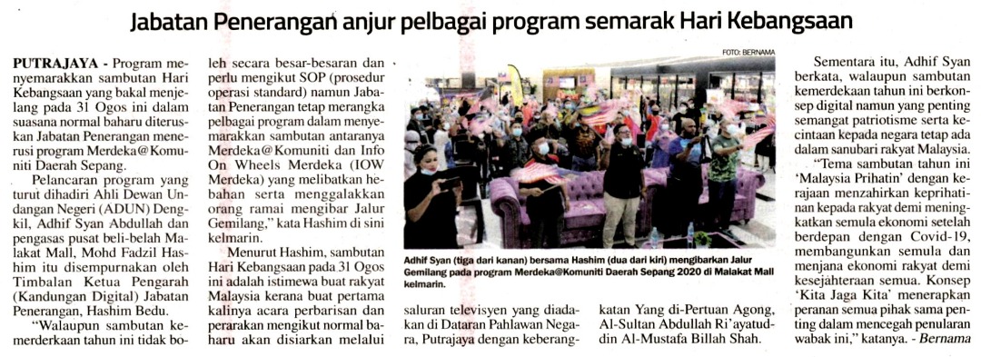 jonathan2023-10-27T18:32:21+08:00[vc_row][vc_column][vc_empty_space][vc_single_image image="6962" img_size="full" alignment="center"][vc_column_text]KUCHING: Walaupun dunia dilanda kegusaran berikutan pandemik Covid -19, namun ianya tidak menjadi penghalang kepada Jabatan Penerangan Malaysia (JAPEN) untuk menganjurkan program-program berbentuk patriotik sempena Bulan Kebangsaan.