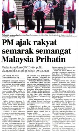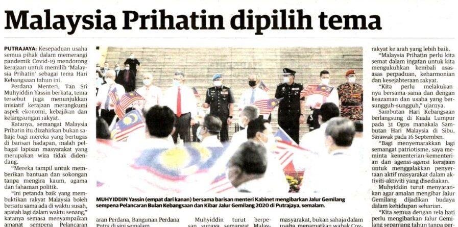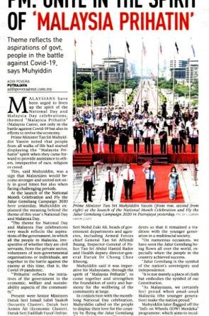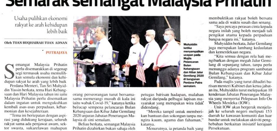 NEW STRAITS TIMES | 29.7.2020 (RABU) | M/S : 6 | PM: UNITE IN THE SPIRIT OF MALAYSIA PRIHATIN jonathan2023-10-27T18:32:21+08:00[vc_row][vc_column][vc_empty_space][vc_single_image image="6917" img_size="full" alignment="center"][/vc_column][/vc_row] 30 Jul 2020Liputan Berita 2020 Read more +