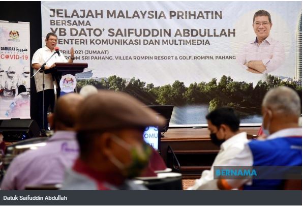 Saifuddin berkata, KKMM mengambil maklum mengenai keperluan meningkatkan komunikasi berkaitan program imunisasi yang diutarakan Menteri Penyelaras Program Imunisasi Covid-19 Kebangsaan, Khairy Jamaluddin, kerana terdapat kawasan di luar bandar dikatakan tidak tahu tentang pelaksanaan program itu.