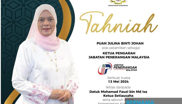 balqis2024-05-17T13:39:10+08:00PUTRAJAYA — Julina Johan (picture) has been appointed as the new Director-General (DG) of the Information Department (JaPen), effective today.