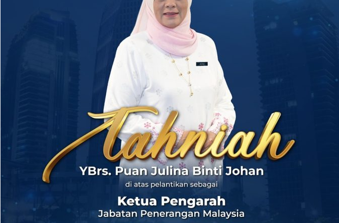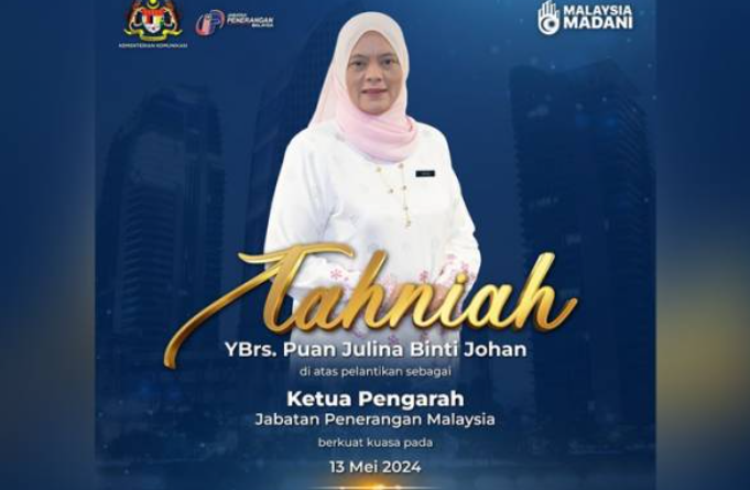 Japen dalam satu kenyataan berkata, Julina, 53, yang sebelum menjawat jawatan Timbalan Ketua Pengarah (Kandungan Digital) sejak 2023 merupakan Ketua Pengarah ke-19 menerajui jabatan itu.