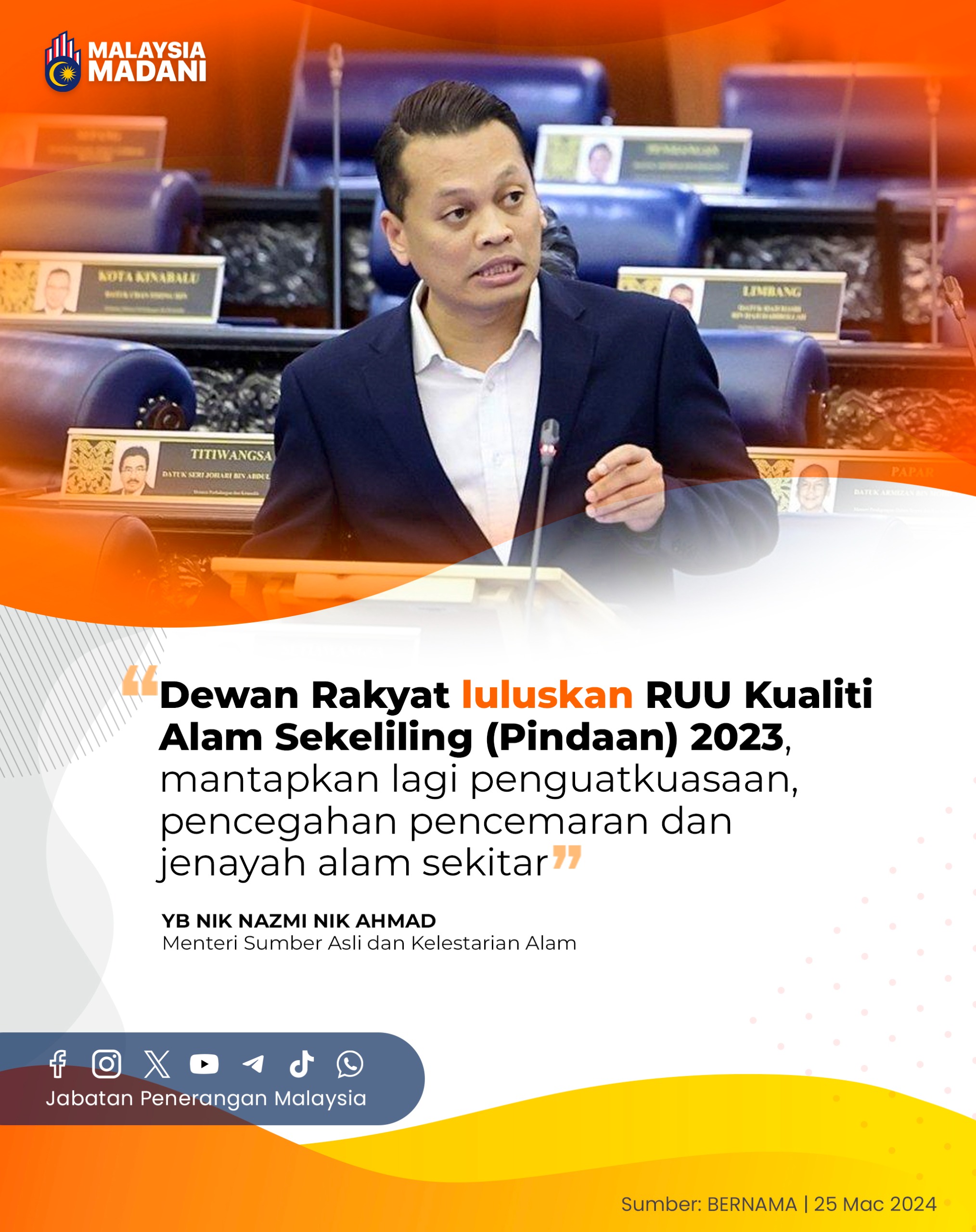 DEWAN RAKYAT LULUSKAN RUU KUALITI ALAM SEKELILING (PINDAAN) 2023, MANTAPKAN LAGI PENGUATKUASAAN, PENCEGAHAN DAN PENCEMARAN DAN JENAYAH ALAM SEKITAR
