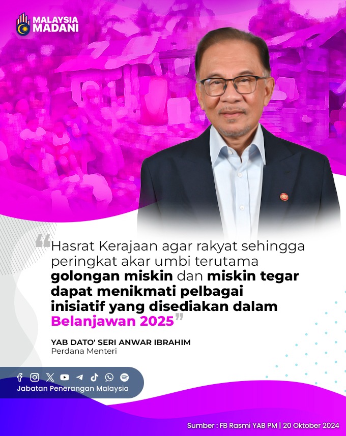 HASRAT KERAJAAN AGAR RAKYAT SEHINGGA PERINGKAT AKAR UMBI TERUTAMA GOLONGAN MISKIN DAN MISKIN TEGAR DAPAT MENIKMATI PELBAGAI INISIATIF YANG DISEDIAKAN DALAM BELANJAWAN 2025
