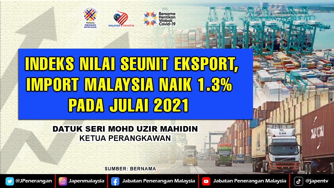 INDEKS NILAI SEUNIT EKSPORT, IMPORT MALAYSIA NAIK 1.3% PADA JULAI 2021
