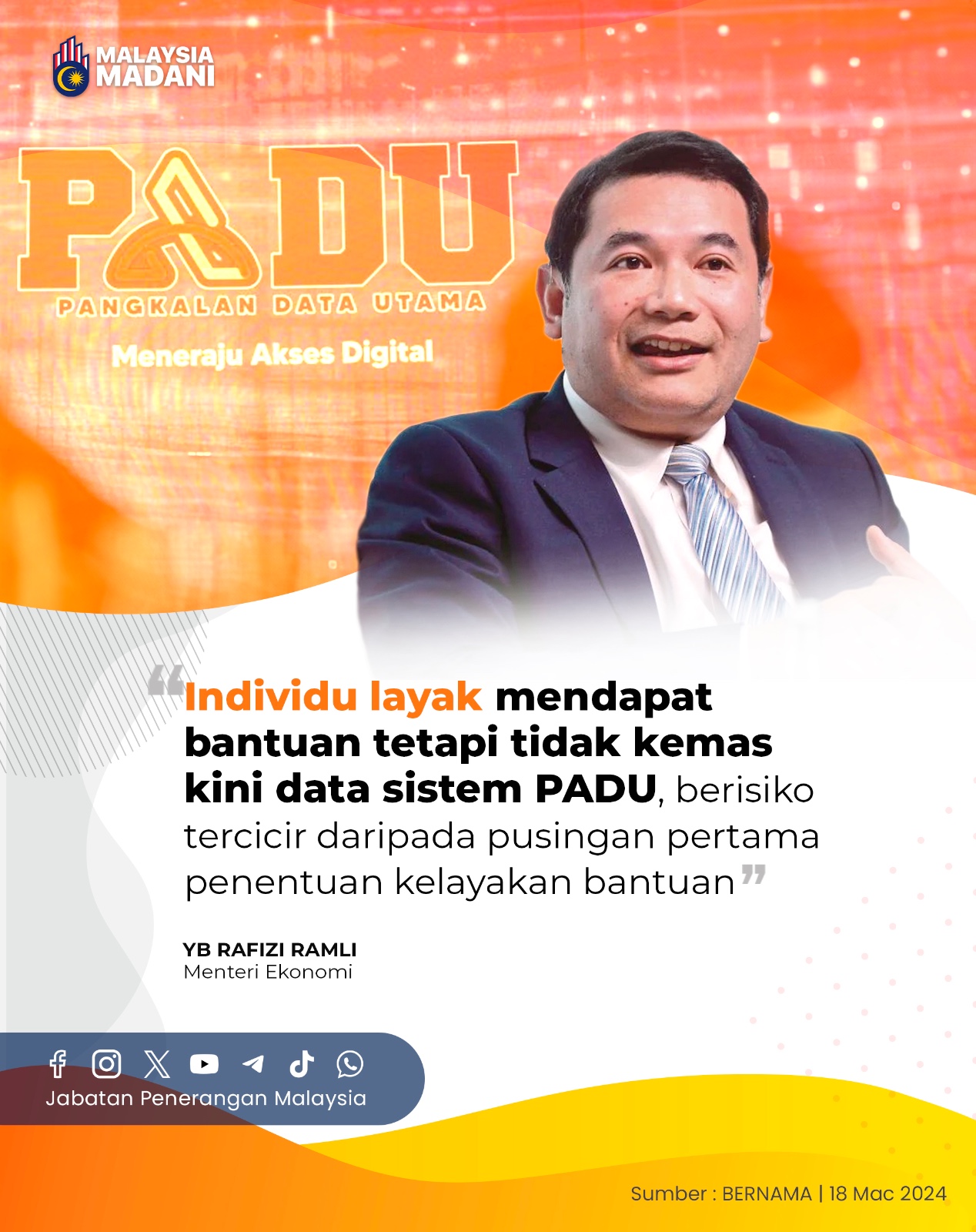 INDIVIDU LAYAK MENDAPAT BANTUAN TETAPI TIDAK KEMAS KINI DATA SISTEM PADU, BERISIKO TERCICIR DARIPADA PUSINGAN PERTAMA PENENTUAN KELAYAKAN BANTUAN