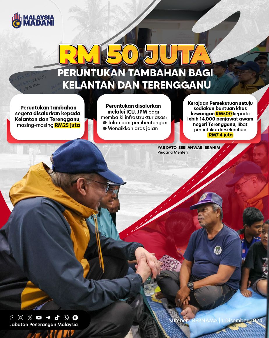 RM50 JUTA PERUNTUKAN TAMBAHAN BAGI KELANTAN DAN TERENGGANU, MASING-MASING RM25 JUTA