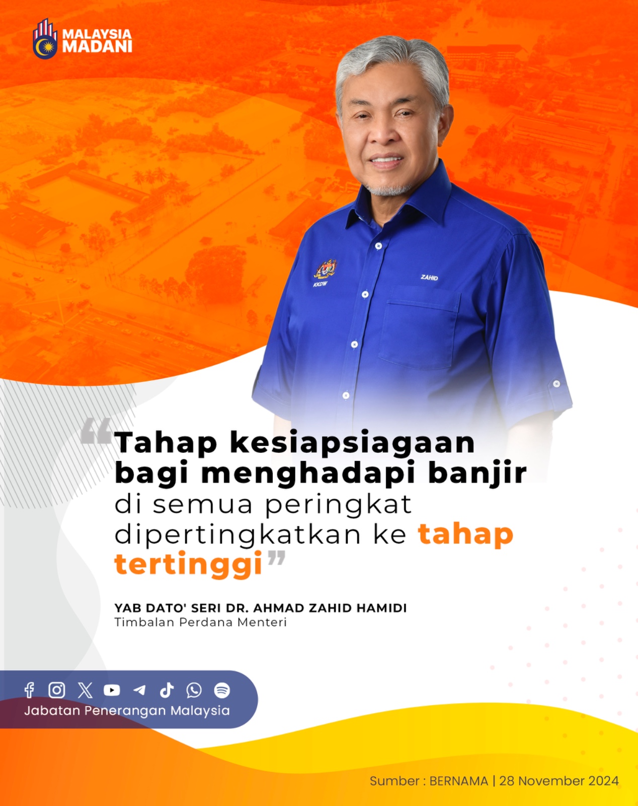 TAHAP KESIAPSIAGAAN BAGI MENGHADAPI BANJIR DI SEMUA PERINGKAT DIPERTINGKATKAN KE TAHAP TERTINGGI