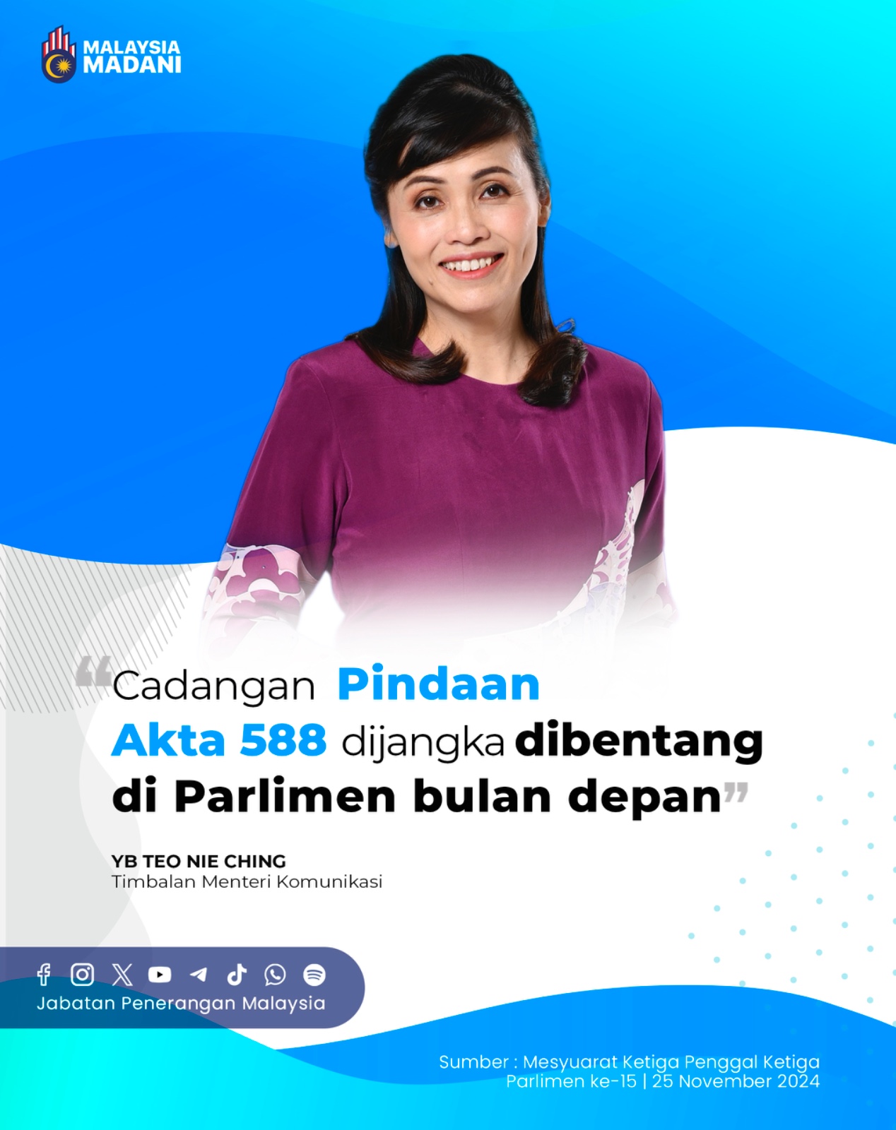 CADANGAN PINDAAN AKTA 588 DIJANGKA DIBENTANG DI PERLIMEN BULAN DEPAN