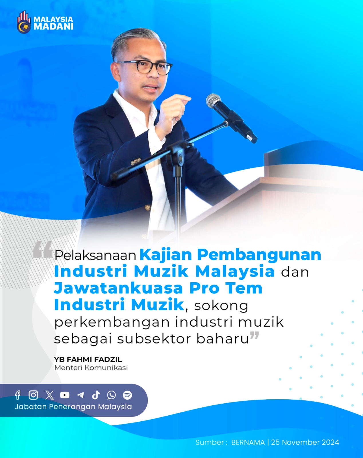 PELAKSANAAN KAJIAN PEMBANGUNAN INDUSTRI MUZIK MALAYSIA DAN JAWATANKUASA PRO TEM INDUSTRI MUZIK, SOKONG PERKEMBANGAN INDUSTRI MUZIK SEBAGAI SUBSEKTOR BAHARU