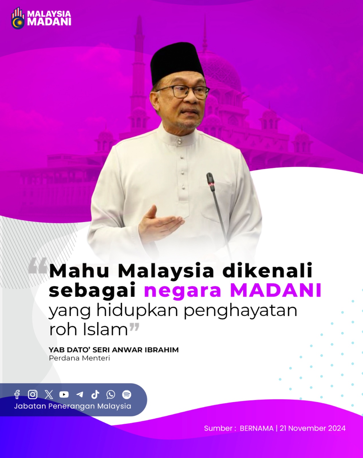 MAHU MALAYSIA DIKENALI SEBAGAI NEGARA MADANI YANG HIDUPKAN PENGHAYATAN ROH ISLAM