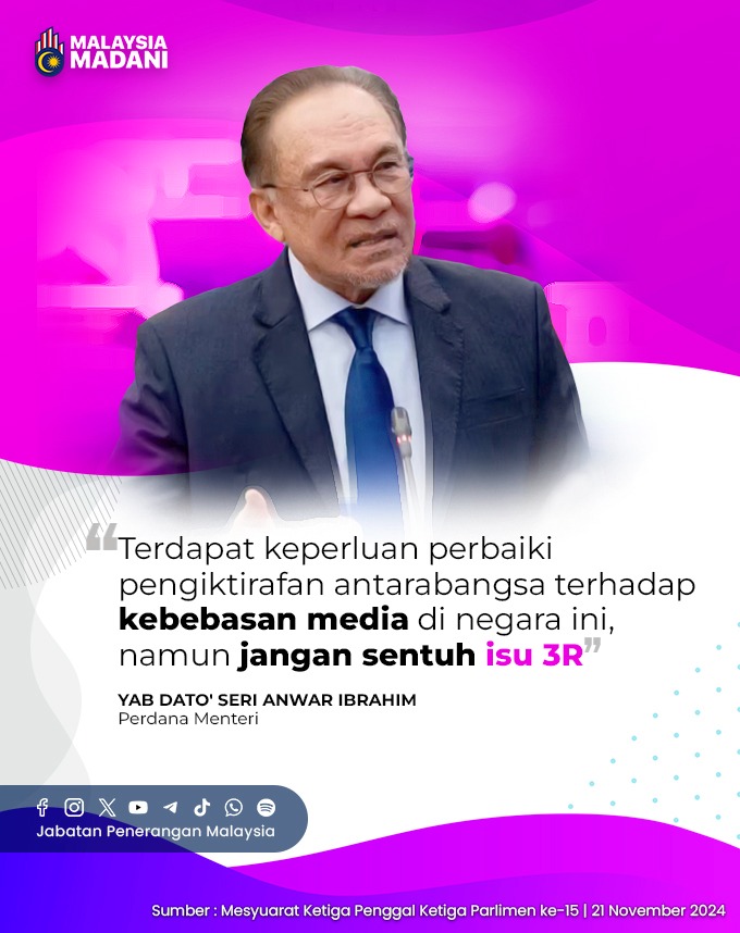 TERDAPAT KEPERLUAN PERBAIKI PENGIKTIRAFAN ANTARABANGSA TERHADAP KEBEBASAN MEDIA DI NEGARA INI, NAMUN JANGAN SENTUH ISU 3R