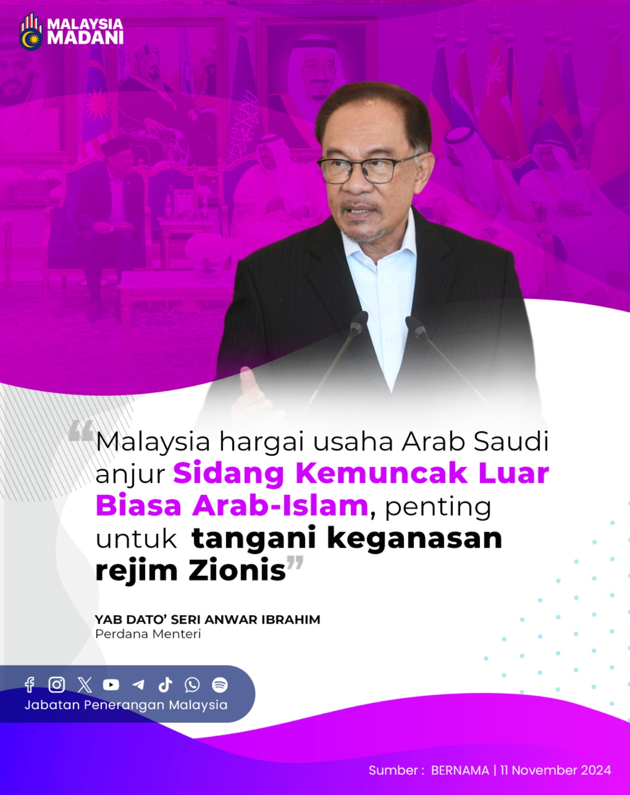 MALAYSIA HARGAI USAHA ARAB SAUDI ANJUR SIDING KEMUNCAK LUAR BIASA ARAB-ISLAM, PENTING UNTUK TANGANI KEGANASAN REJIM ZIONIS