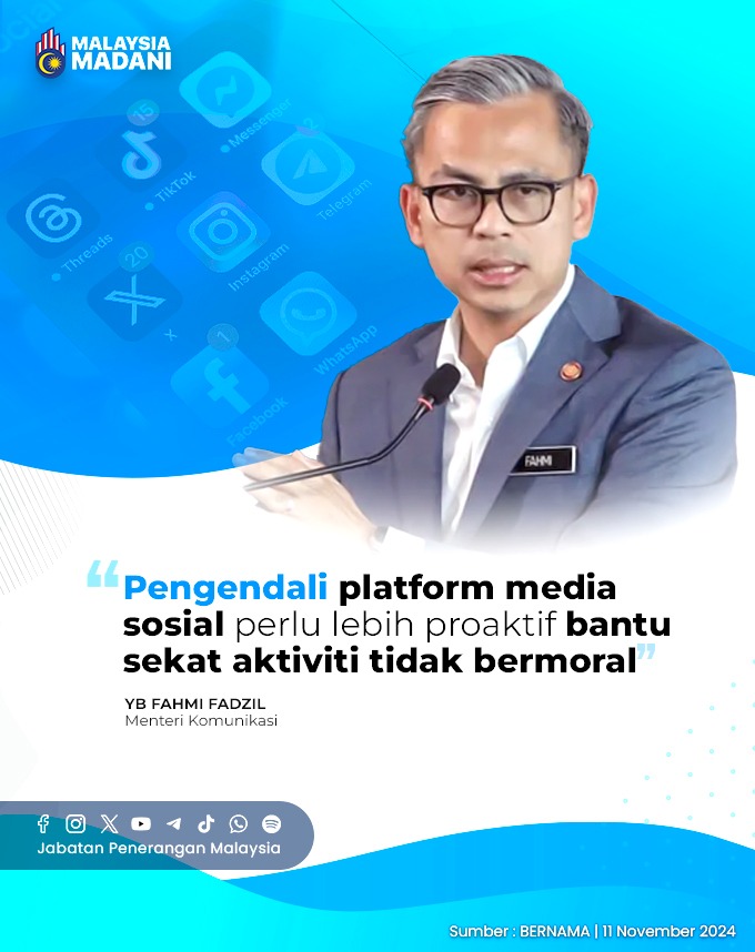 PENGENDALI PLATFORM MEDIA SOCIAL PERLU LEBIH PROAKTIF BANTU SEKAR AKTIVITI TIDAK BERMORAL