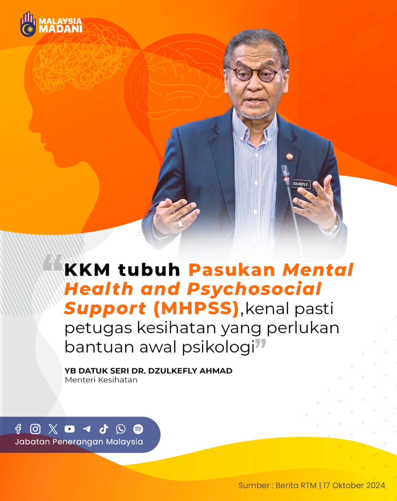 KKM TUBUH PASUKAN MENTAL HEALTH AND PSYCHOSOCIAL SUPPORT (MHPSS), KENAL PASTI PETUGAS KESIHATAN YANG PERLUKAN BANTUAN AWAL PSIKOLOGI