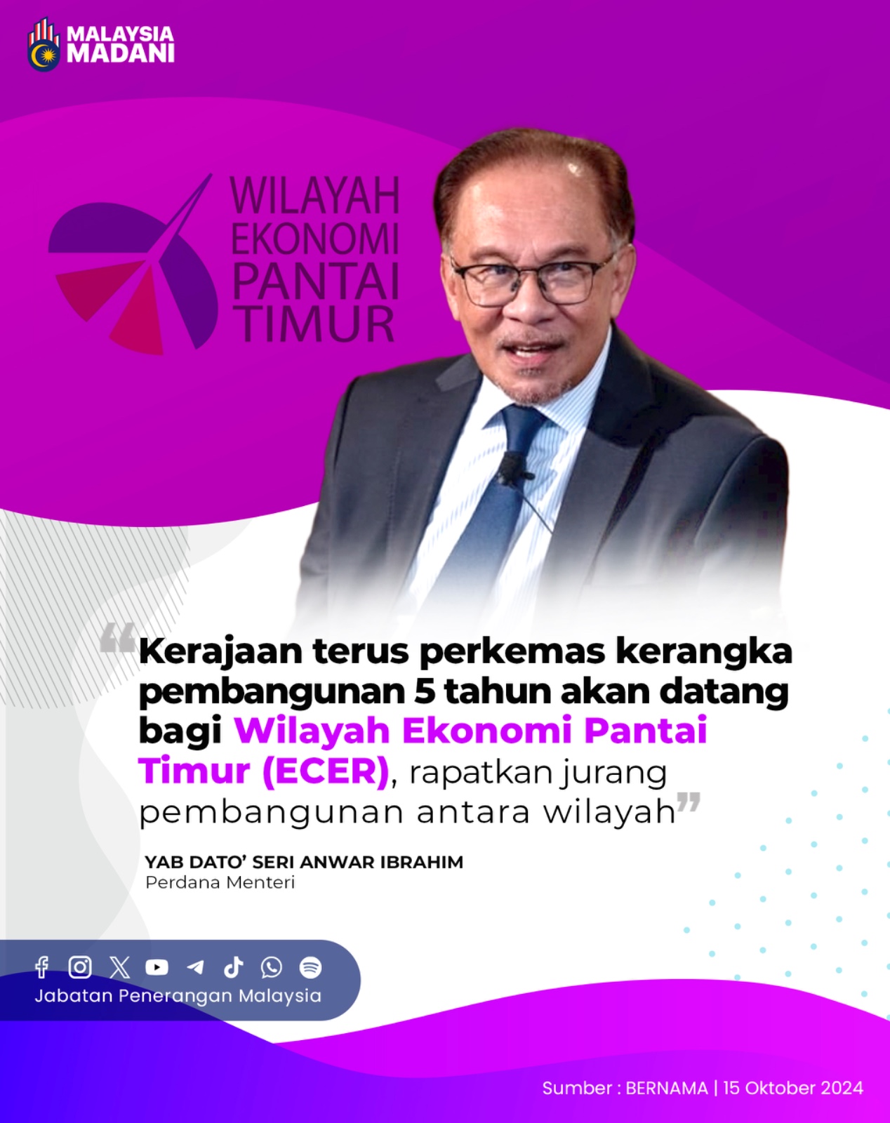 KERAJAAN TERUS PERKEMAS KERANGKA PEMBANGUNAN 5 TAHUN AKAN DATANG BAGI WILAYAH EKONOMI PANTAI TIMUR (ECER), RAPATKAN JURANG PEMBANGUNAN ANTARA WILAYAH