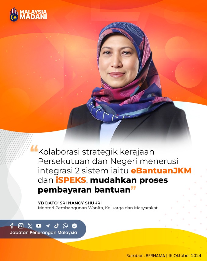 KOLABORASI STRATEGIK KERAJAAN PERSKUTUAN DAN NEGERI MENERUSI INTEGRASI 2 SISTEM IAITU EBANTUANJKM DAN ISPEKS, MUDAHKAN PROSES PEMBAYARAN BANTUAN