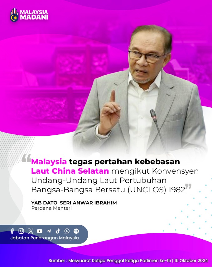MALAYSIA TEGAS PERTAHAN KEBEBASAN LAUT CHINA SELATAN MENGIKUT KONVENSYEN UNDANG-UNDANG LAUT PERTUBUHAN BANGSA-BANGSA BERSATU (UNCLOS) 1982