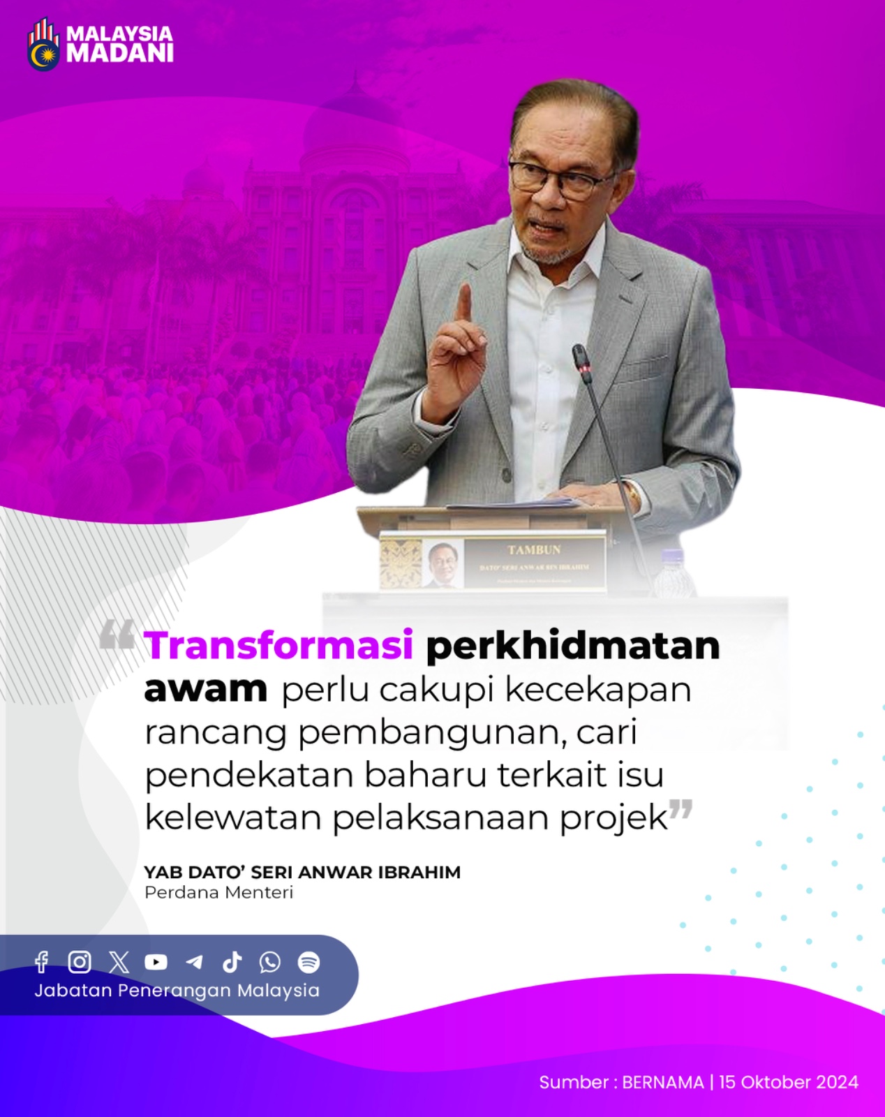 TRANSFORMASI PERKHIDMATAN AWAM PERLU CUKUPI KECEKAPAN RANCANG PEMBANGUNAN, CARI PENDEKATAN BAHARU TERKAIT ISU KELEWATAN PELAKSANAAN PROJEK